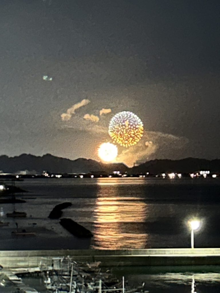 瀬戸内海を臨む展望レストラン「ダイニング晴」から、夜空に咲く花火を間近でご覧いただけます。